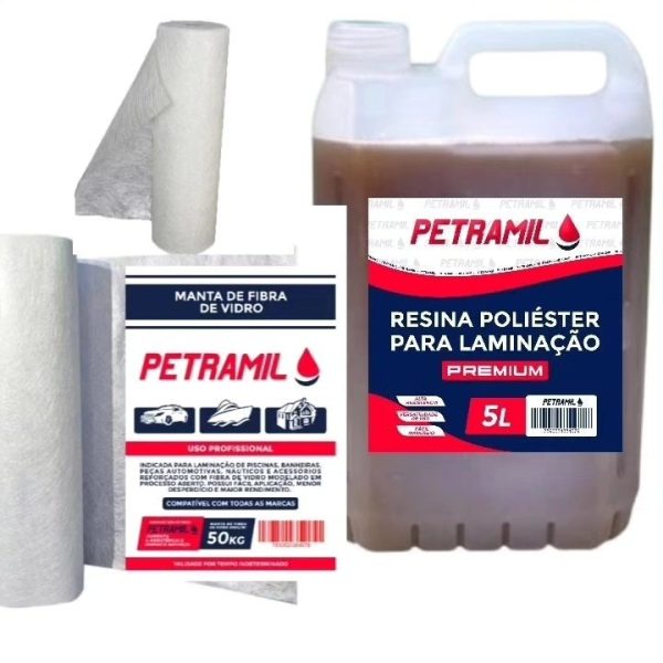 Resina poliéster 5 kg + 2 kg manta fibra de vidro gr450 + 0,100ml catalisador
